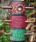 • Accessories for motor cycle enthusiasts, individualised to your requirements • Quality fashion items such as hair clasps, pendants, wristbands and belts • Decorative panels for individualising bridles, saddles and panniers • Personalised straps for all manner of musical instruments • Sculptures and fine art items • Adult items • Repair and renovation of your leather items. If you have a worn-out leather product, I will attempt to reproduce it. If you want it, I can probably make it for you! Here are a few examples of my work- click on a thumbnail to see a larger version. |